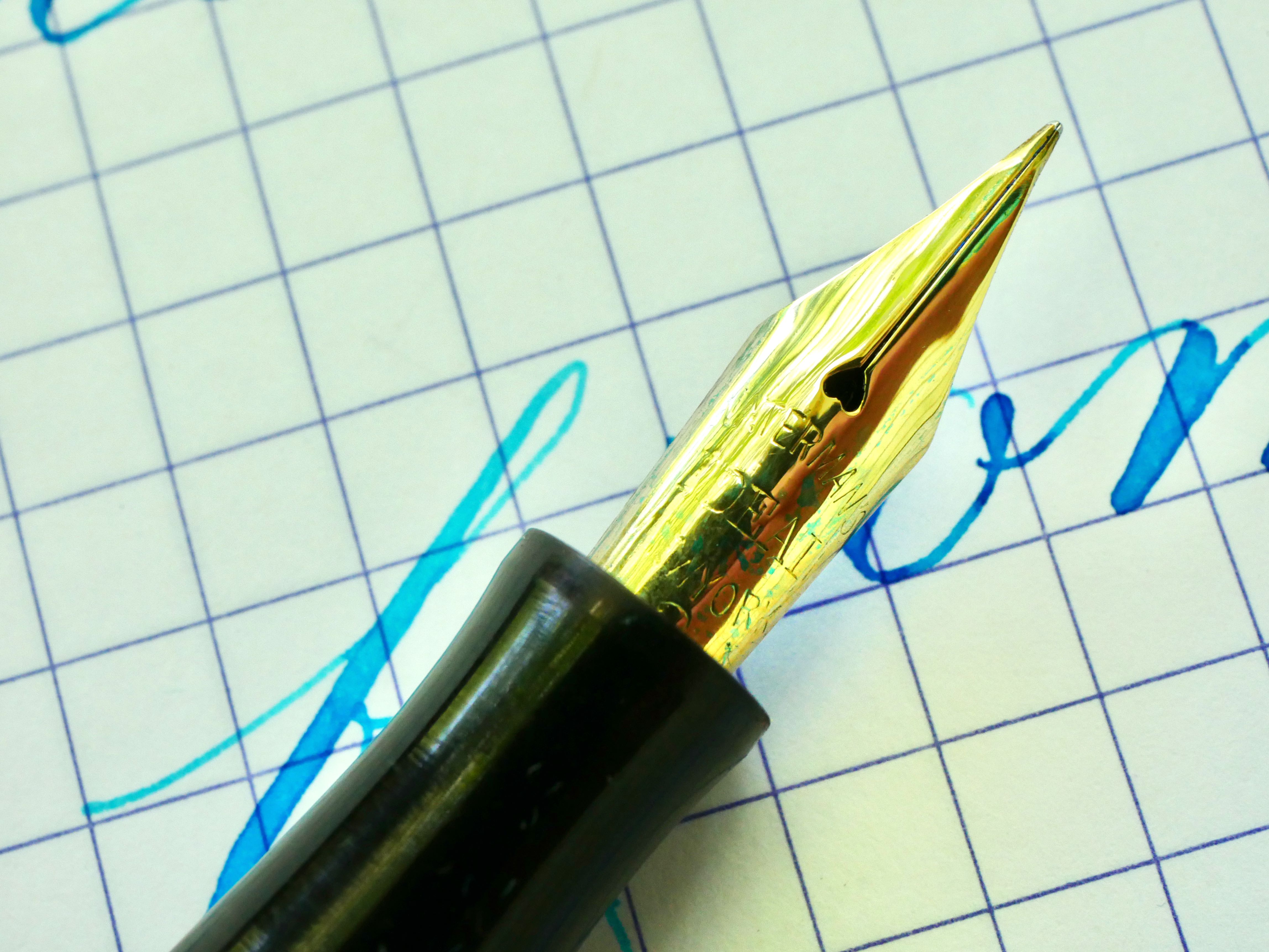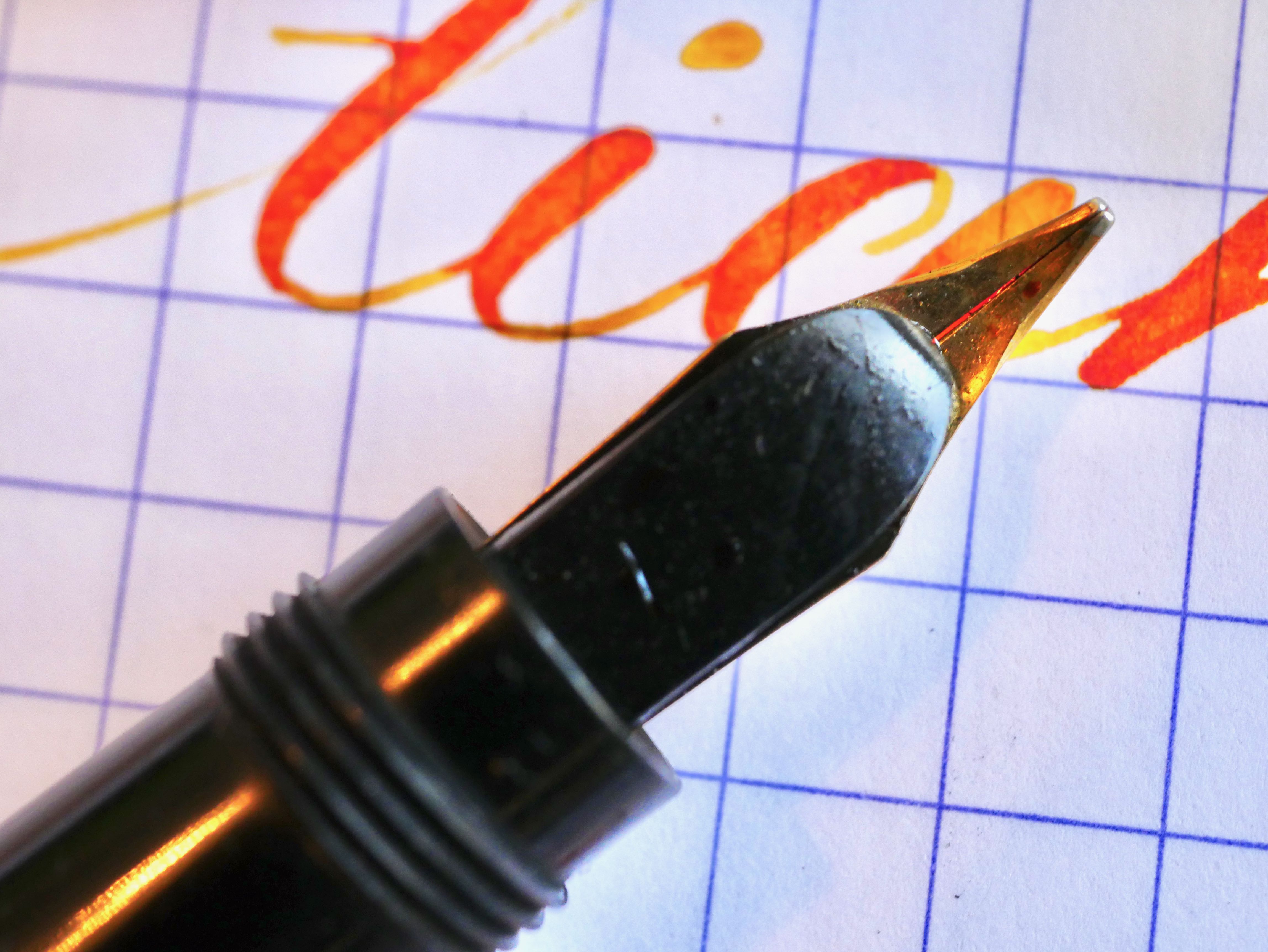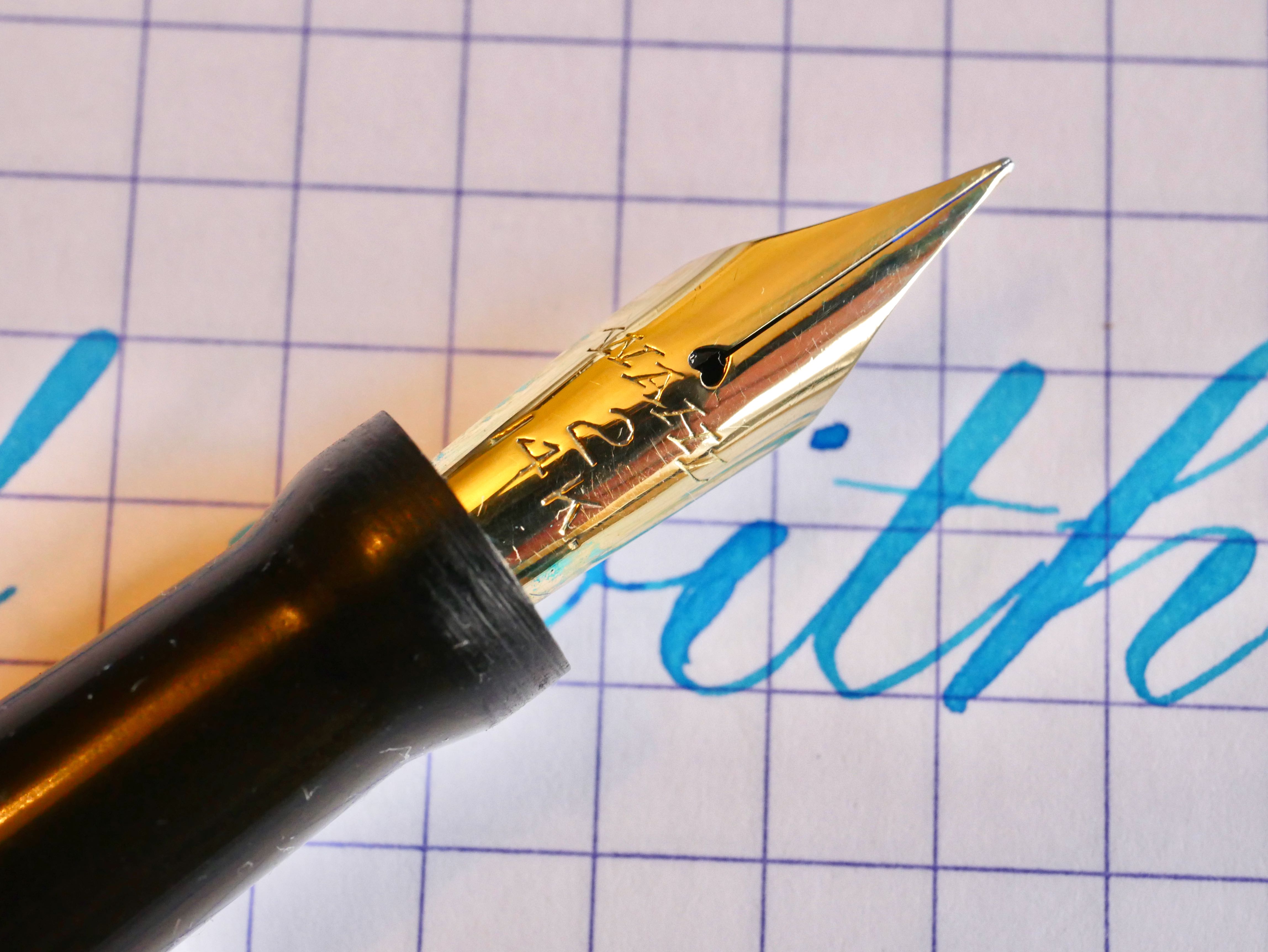- Nib and feed ultrasonically cleaned, heat set with section, and adjusted for optimal flow
