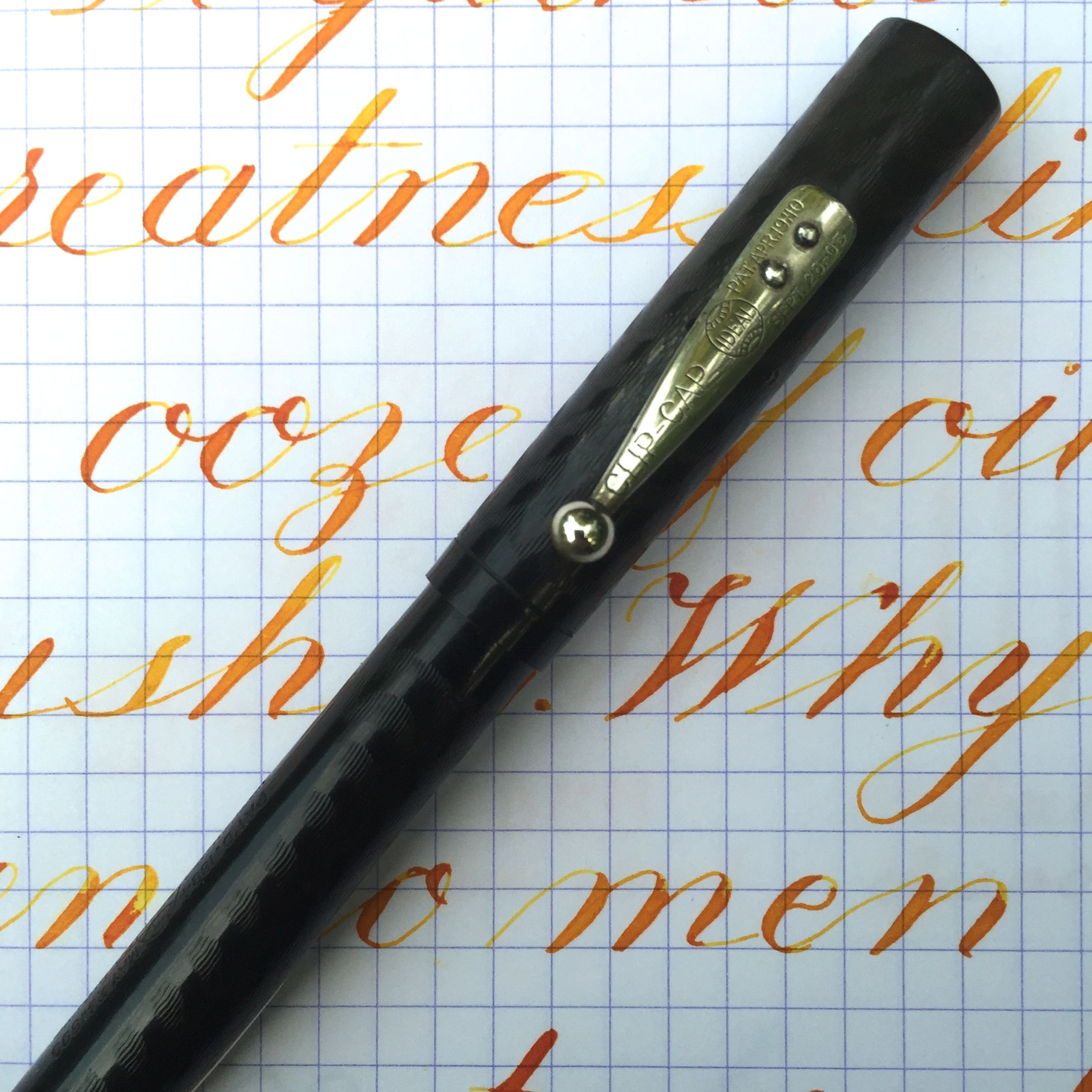 Here is a Waterman 14 PSF in BCHR in fantastic condition. The black hard rubber body of this pen is still black and even has the original shine. There is just the slightest bit of grayish fade appearing on the top half of the cap; otherwise, the body looks brand new. Imprints are all good and crisp as well. The nickel trim looks great. The only real flaw of this pen is that the cap threads a bit tight. It’s clearly the original cap and the external threads are perfect, so probably a small scratch or something on the internal cap threads. The best part of this pen is 14kt. Waterman #4 nib. It writes normally as nice, wet XF/ F that is very smooth and springy. The flex on this nib comes with ease. It is right on the border between super flex and wet noodle in my testing, but the responsiveness is what really sets this apart as an elite flex nib. It’s very easy to control and a joy to use.