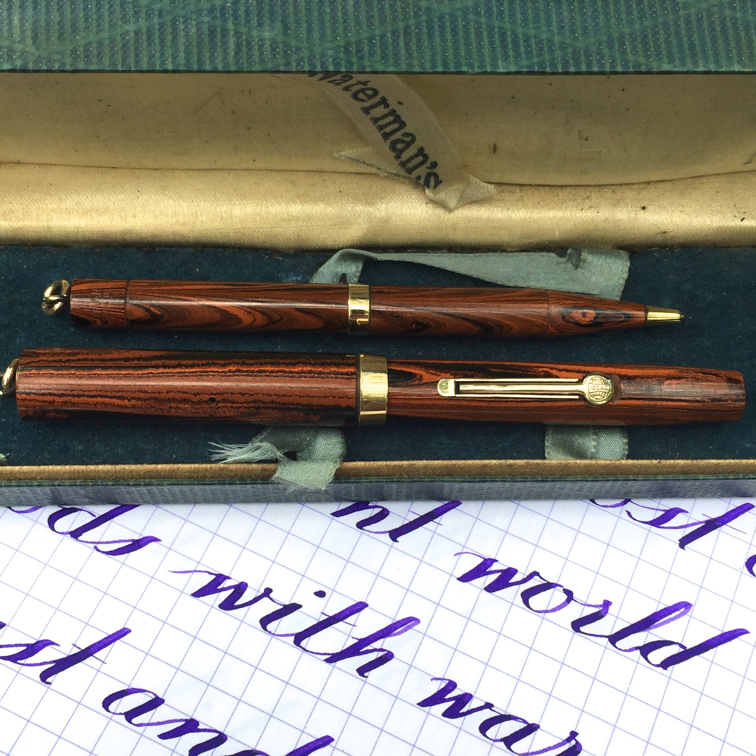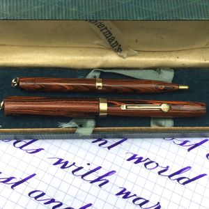 Waterman 52 1/2 V Red Mottled Pen & Pencil Combo (Broad Factory Italic) – Super Flex (On Ebay)
