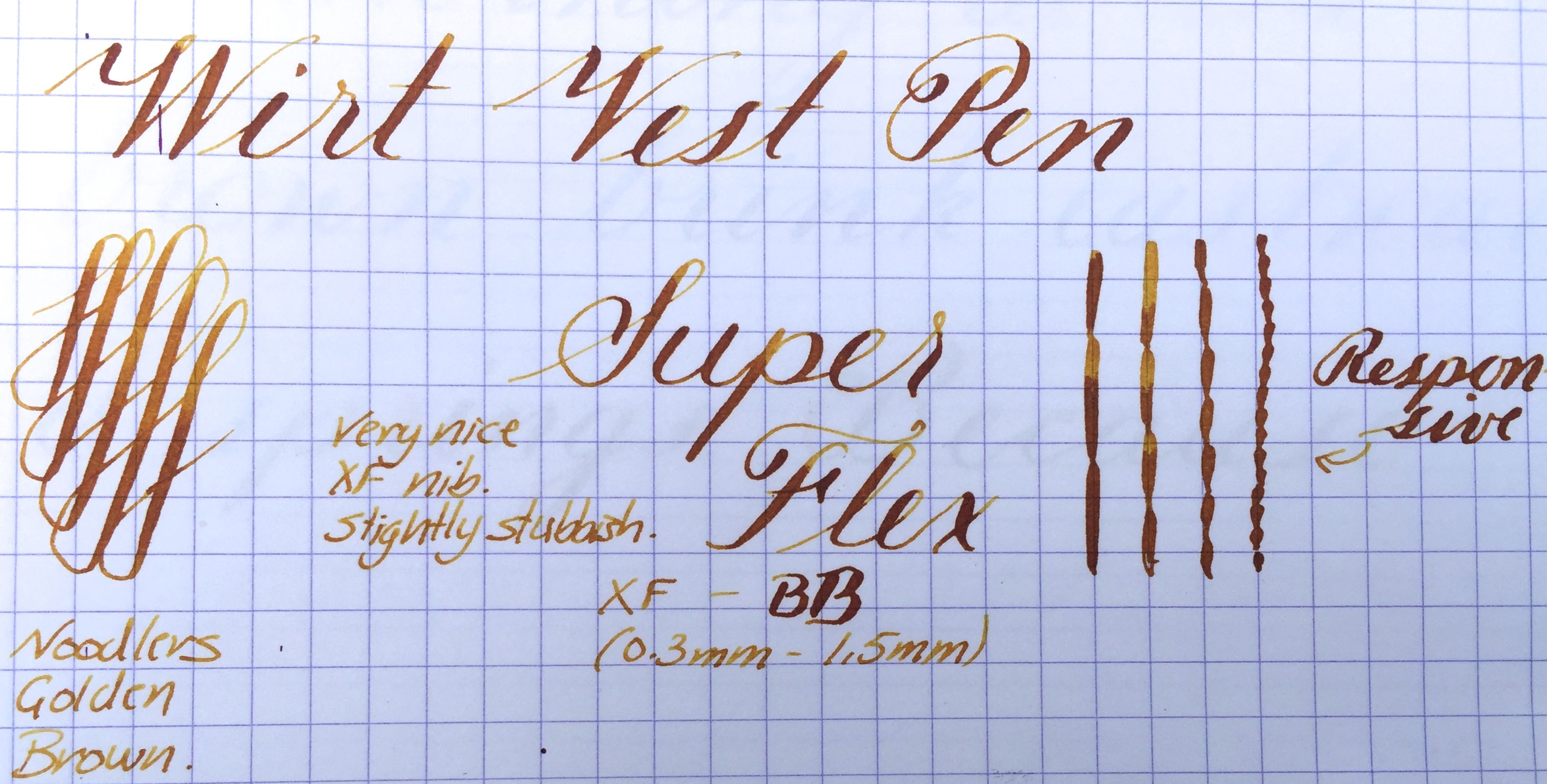 NIB: Wirt, XF to BB (0.3mm-1.5mm), SUPER FLEX (See “Grading Flex Nibs” for How I Grade)