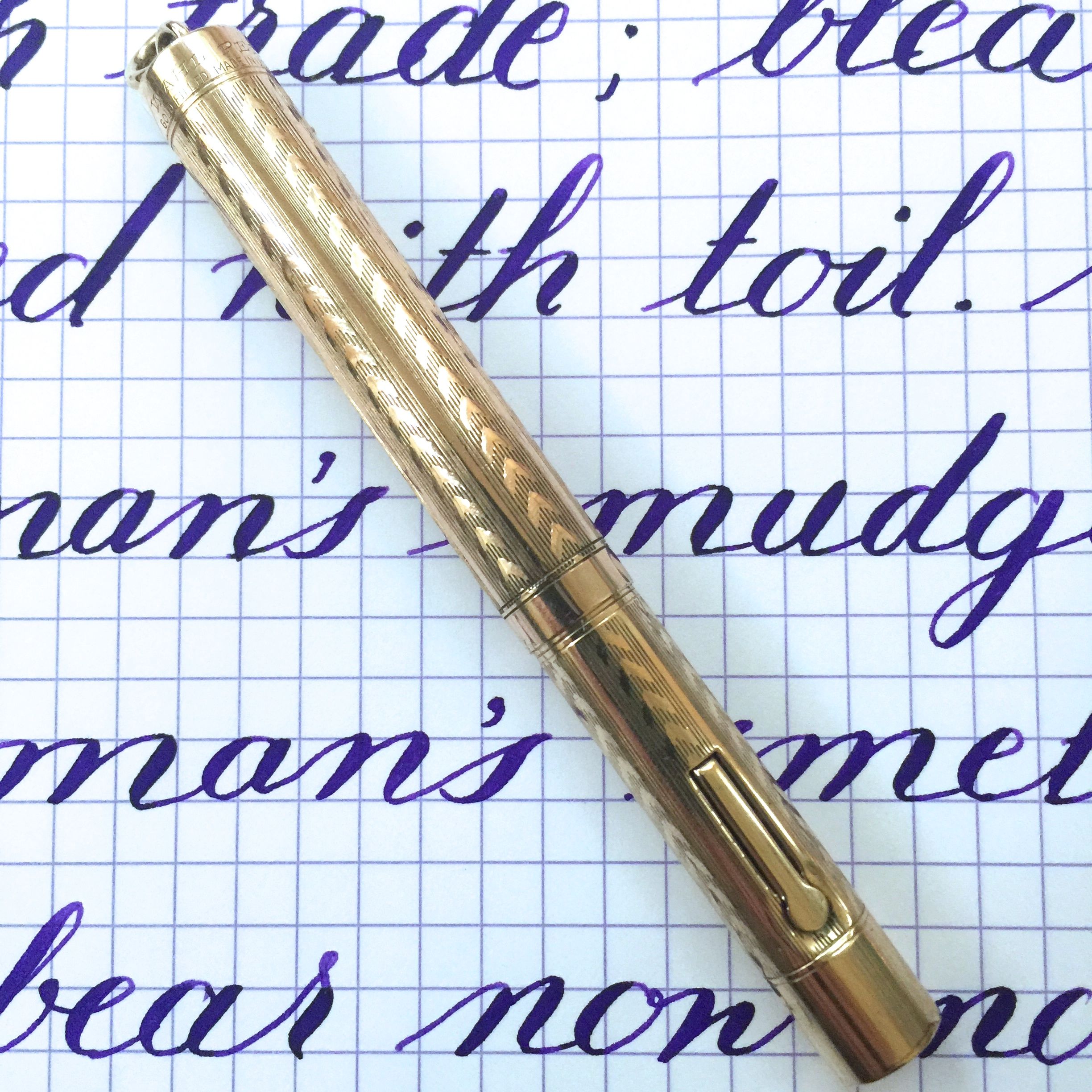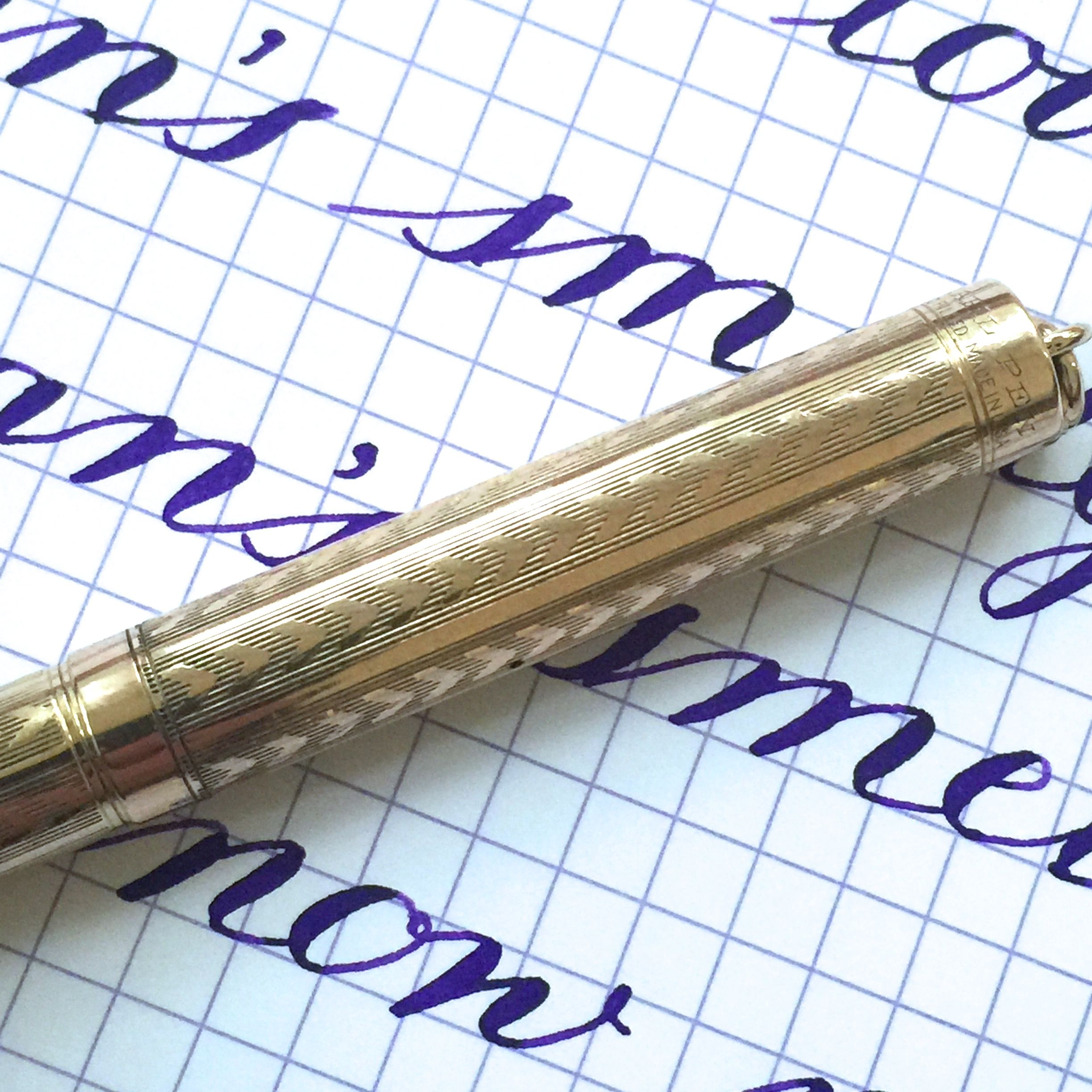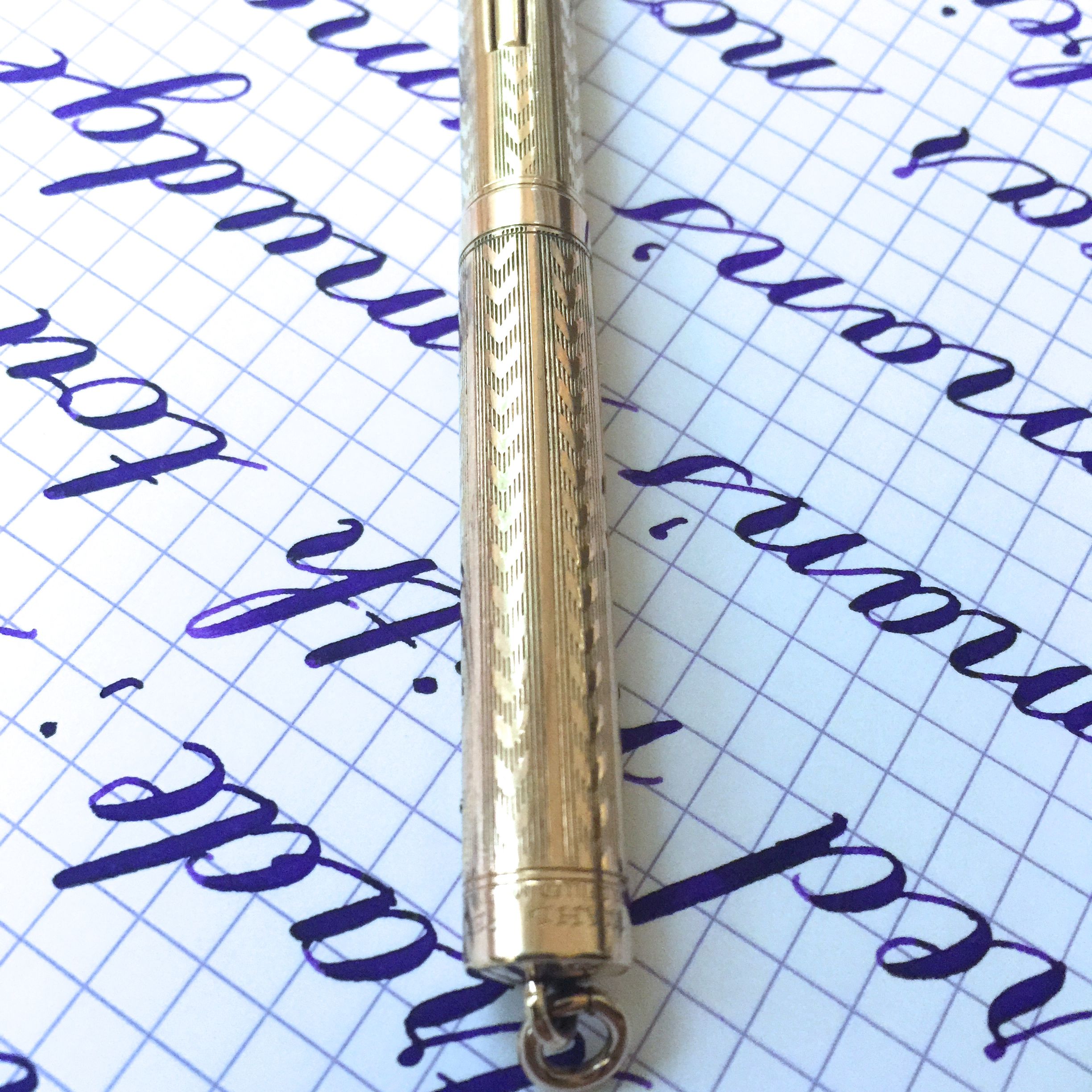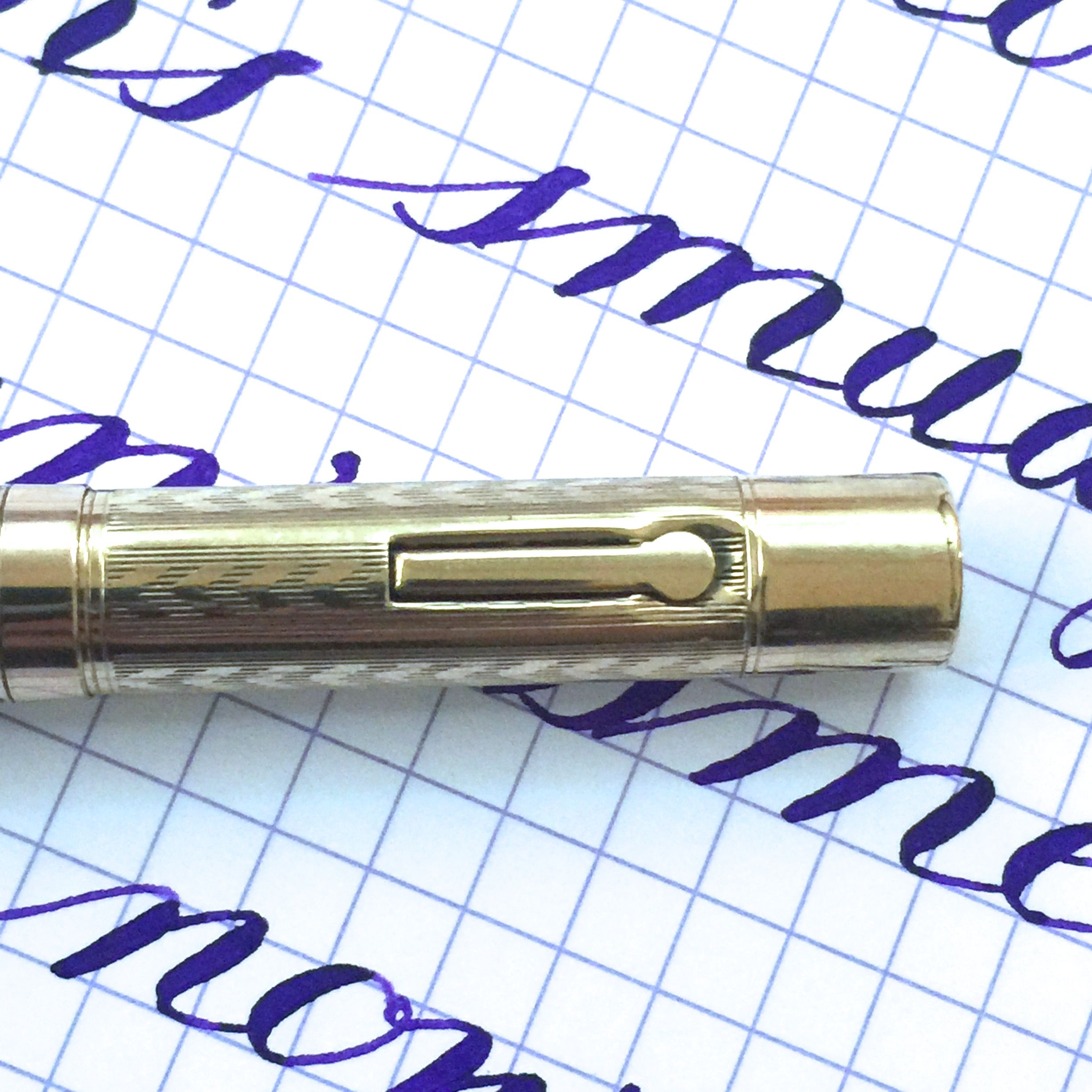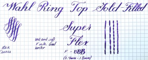 This Wahl gold-filled ring top is in quite nice condition. The body shows very little signs of brassing. There is just a little on the edge at the end of the barrel. There is some light scratching on the pen from use as is typical for these pens, but nothing major. There are no dings or dents on the pen, which is actually pretty rare for these ring tops. The 14kt. Wahl #2 is a wet, soft, and smooth. The flex on the pen is a bit on the stiffer side of super flex, but it has fantastic range of flex going from F (0.4mm) to BBB (1.8mm). Responsiveness is also pretty good. These make for nice, durable, and portable pens, and the flex just makes it that much more useful.