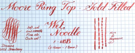 NIB: Moore #2, F to BBB (0.4mm-1.8mm), WET NOODLE (See “Grading Flex Nibs” for How I Grade)