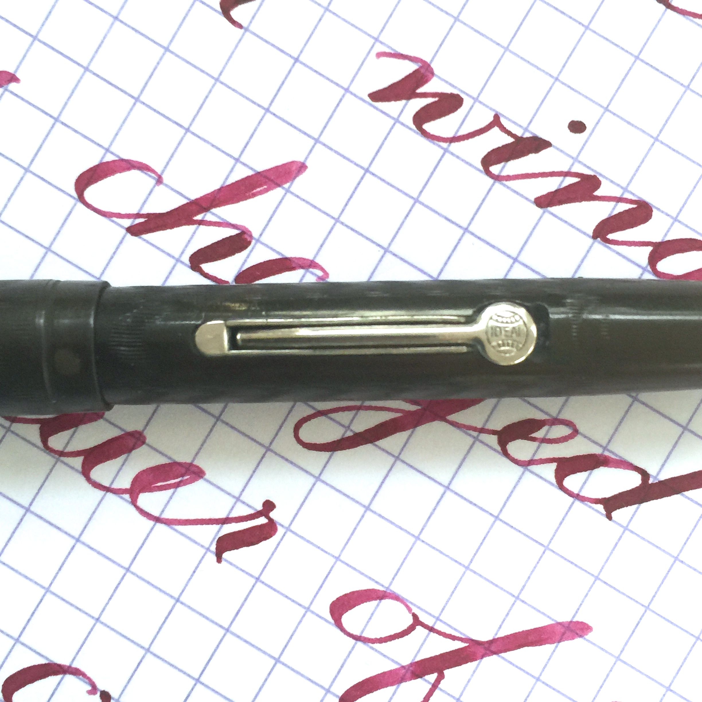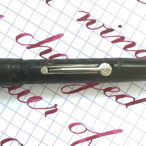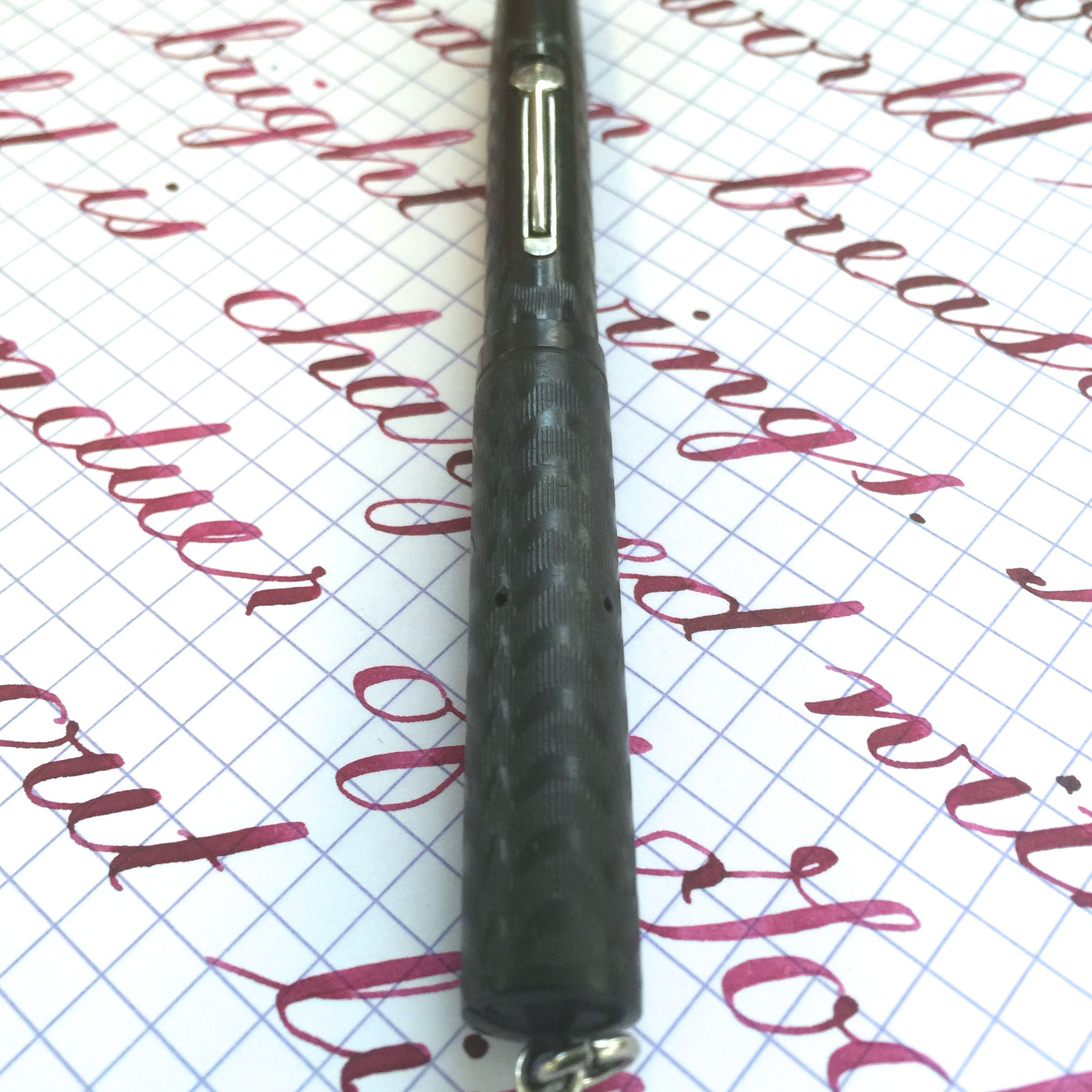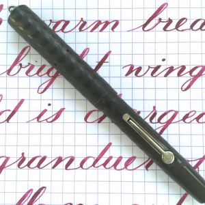 Here is nice Waterman 52 1/2 V in BCHR. The black hard rubber has faded some to a dark brown, but the chasing on the pen is excellent and crisp. The imprints are also very clear and crisp. The nickel trim is in nice condition with no signs of brassing. The 14kt. Waterman #2 nib is a beauty. It’s a soft, wet, and springy F. It flexes softly with ease, near wet noodle ease, all the way to BBB+ (1.9mm). It has about average responsiveness, but it really takes very little pressure to make these tines spread.