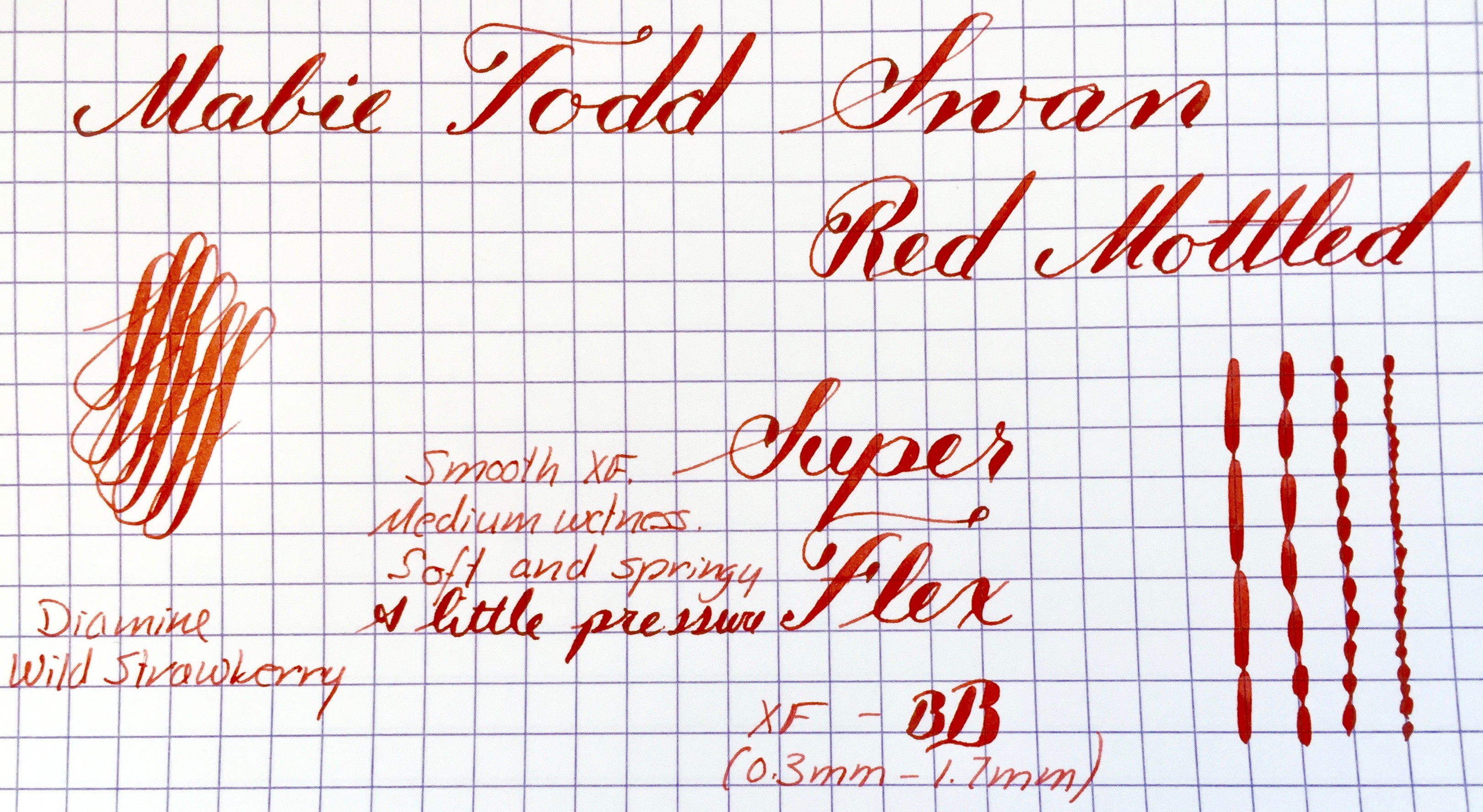 NIB: Mabie Todd Swan, XF to BB (0.3mm-1.7mm), SUPER FLEX (See “Grading Flex Nibs” for How I Grade)