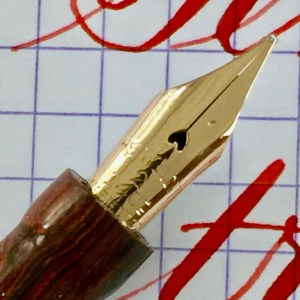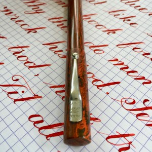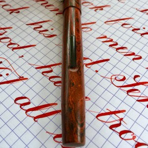 This is a made in England Mabie Todd Swan Minor with a No.2 nib. The pen is made of a nice red mottled hard rubber. The color is still quite good with only a little bit of fading. The imprints are also very good and crisp. The nickel filled clip has some wear from use. Most of the nickel remains in tact but it is matted and scuffed from the wear. The lever of this model was and is black in color and is in good shape. The 14kt. #2 Swan nib is a smooth writing F (0.5mm) with medium wetness. This is not a gusher but the flow keeps up. The nib doesn’t have that super buttery feel a wet nib will have, but it is still very smooth. The flex on this is pen is very good. It ranges from F all the way to a BBB (1.8mm). The flow is very good and the nib has good snap back.