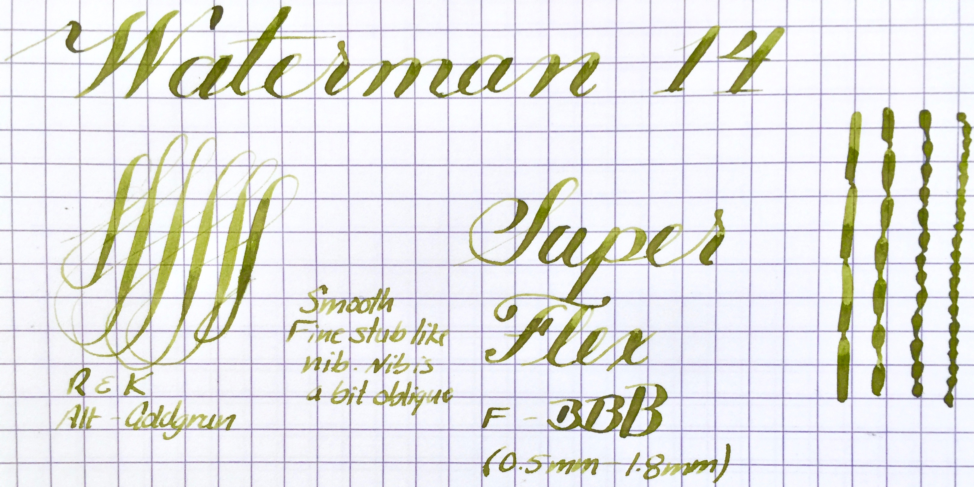 NIB: 14kt. Waterman #4, F to BBB (0.5mm-1.8mm), SUPER FLEX (See “Grading Flex Nibs” for How I Grade)