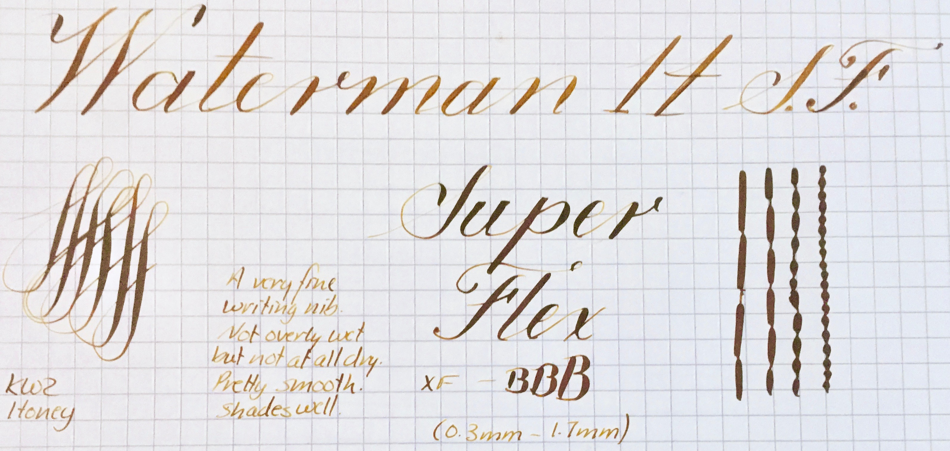 NIB: 14kt. Waterman #4, XF to BBB (0.3mm-1.7mm), SUPER FLEX (See “Grading Flex Nibs” for How I Grade)