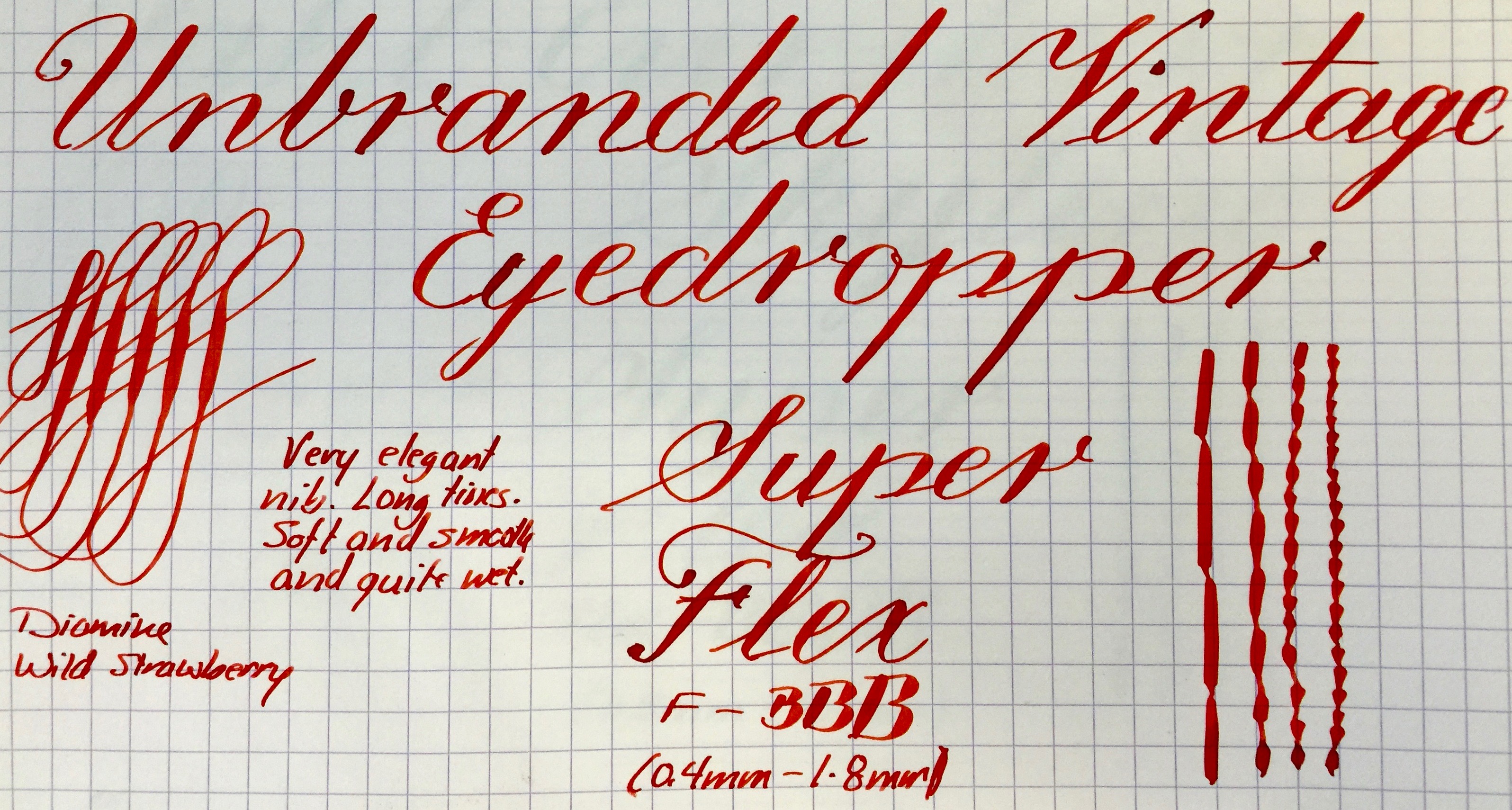 NIB: 14kt. Unbranded, F to BBB (0.4mm-1.8mm), SUPER FLEX (See “Grading Flex Nibs” for How I Grade)
