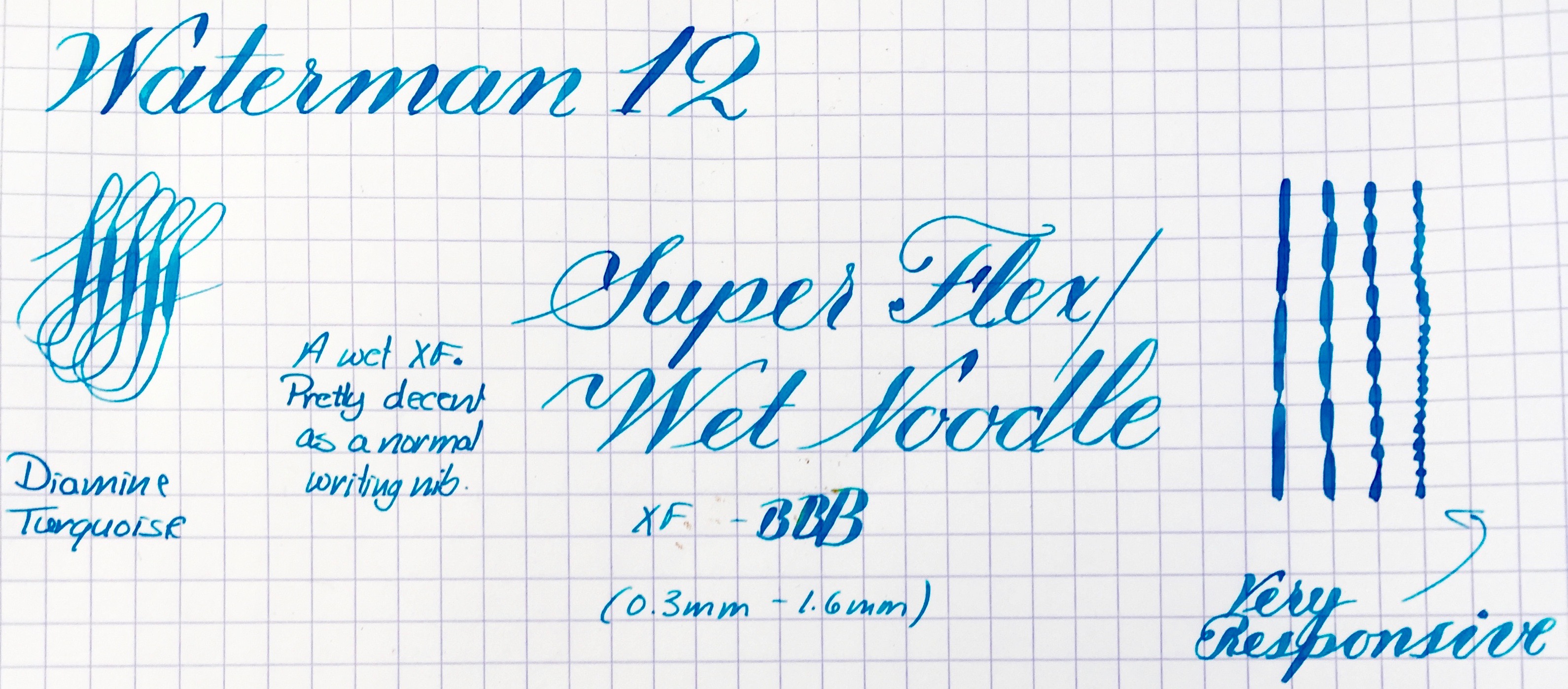 NIB: Waterman #2, XF to BBB (0.3mm-1.6mm), SUPER FLEX / WET NOODLE (See “Grading Flex Nibs” for How I Grade)