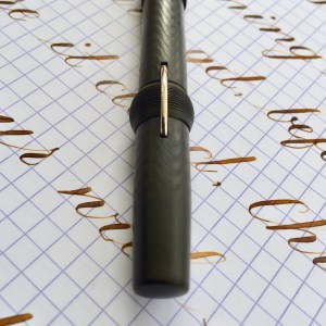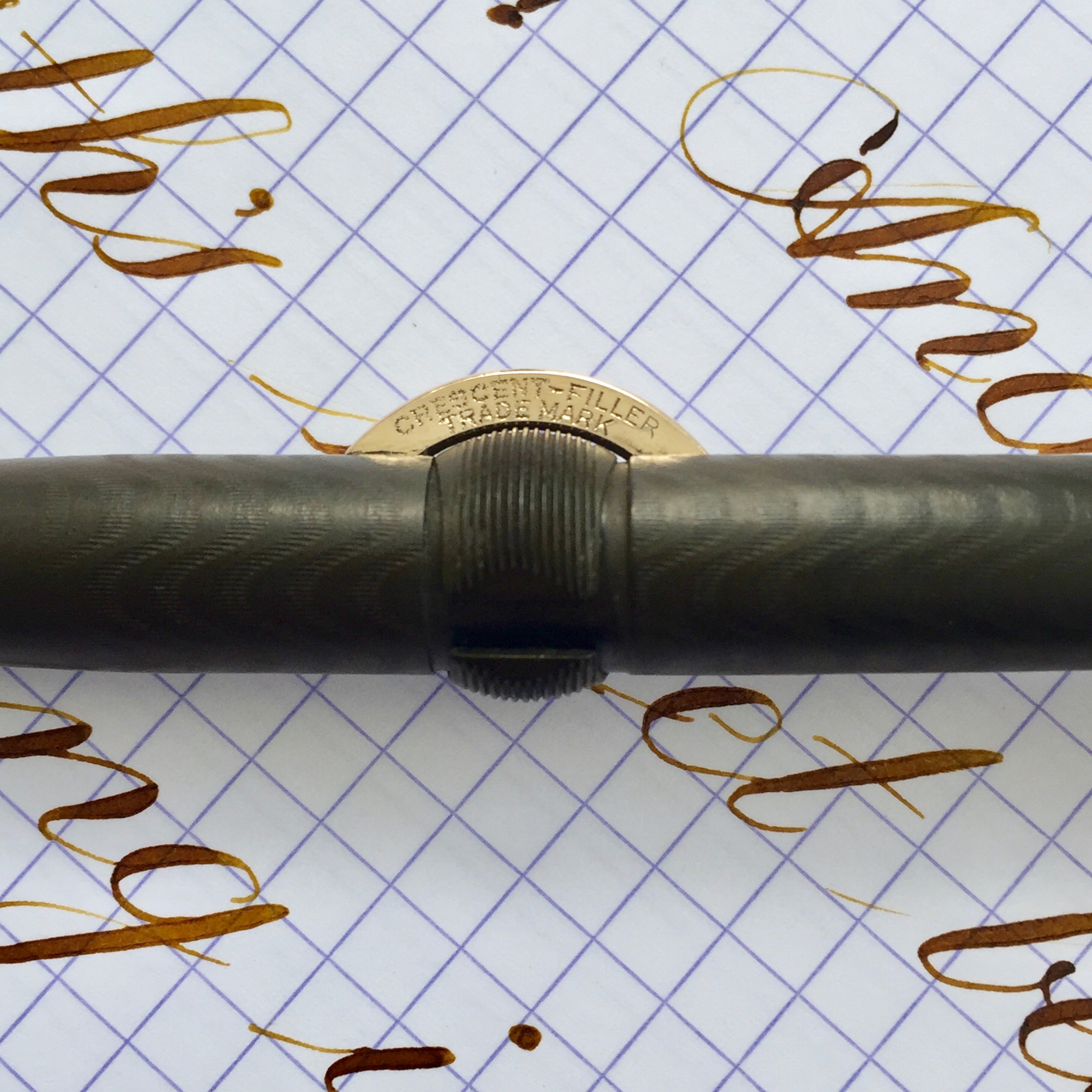 Here is another great vintage flex pen. This one from Conklin. The classic Conklin Crescent in BCHR. This is a model 20 and about the size of a Waterman 52. A bit longer though. The hard rubber is faded some. The body is a very dark brown. The cap is closer to black. Chasing is also more worn on the body (this is likely due to the body being handled much more than the cap) though it is still visible. The imprints are visible and mostly readable. Patent dates are difficult to make out. The gold-filled trim is in good condition with no brassing. The 14kt. Conklin #2 nib is a needlepoint XXF with a good flex range (going up to BBB or 1.7mm) and nice responsiveness. This XXF is also a very nice writer in my opinion. A bit of feedback as expected for how fine it is, but a soft elegant feel to it. This is a pen you could use for any purpose.