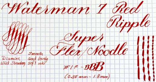 NIB: 14kt. Waterman “RED”, XF/F to BBB (0.35mm-1.8mm), SUPER FLEX/WET NOODLE (See “Grading Flex Nibs” for How I Grade)