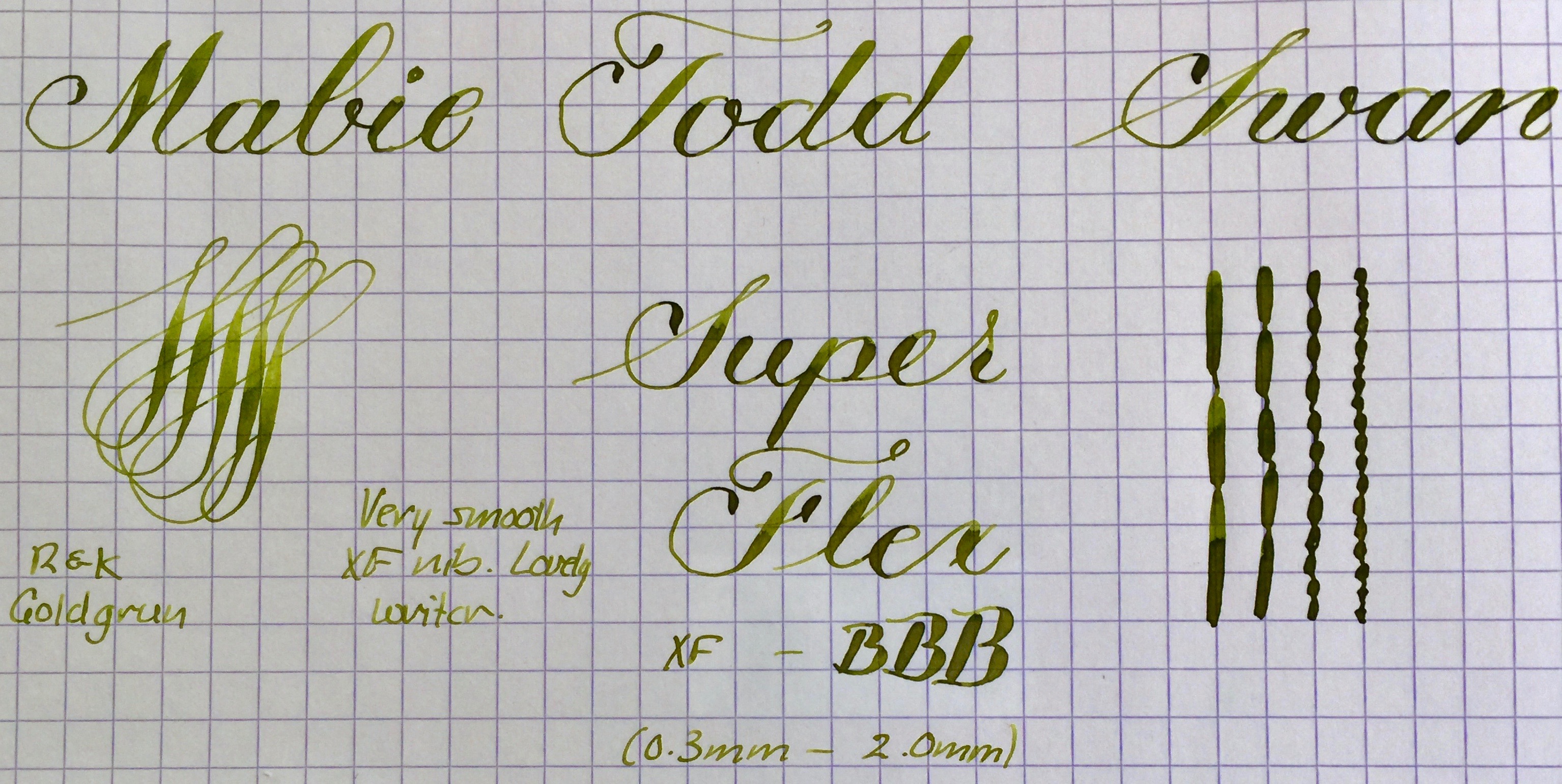 NIB: 14kt. Swan, XF to BBB (0.3mm-2.0mm), SUPER FLEX (See “Grading Flex Nibs” for How I Grade)