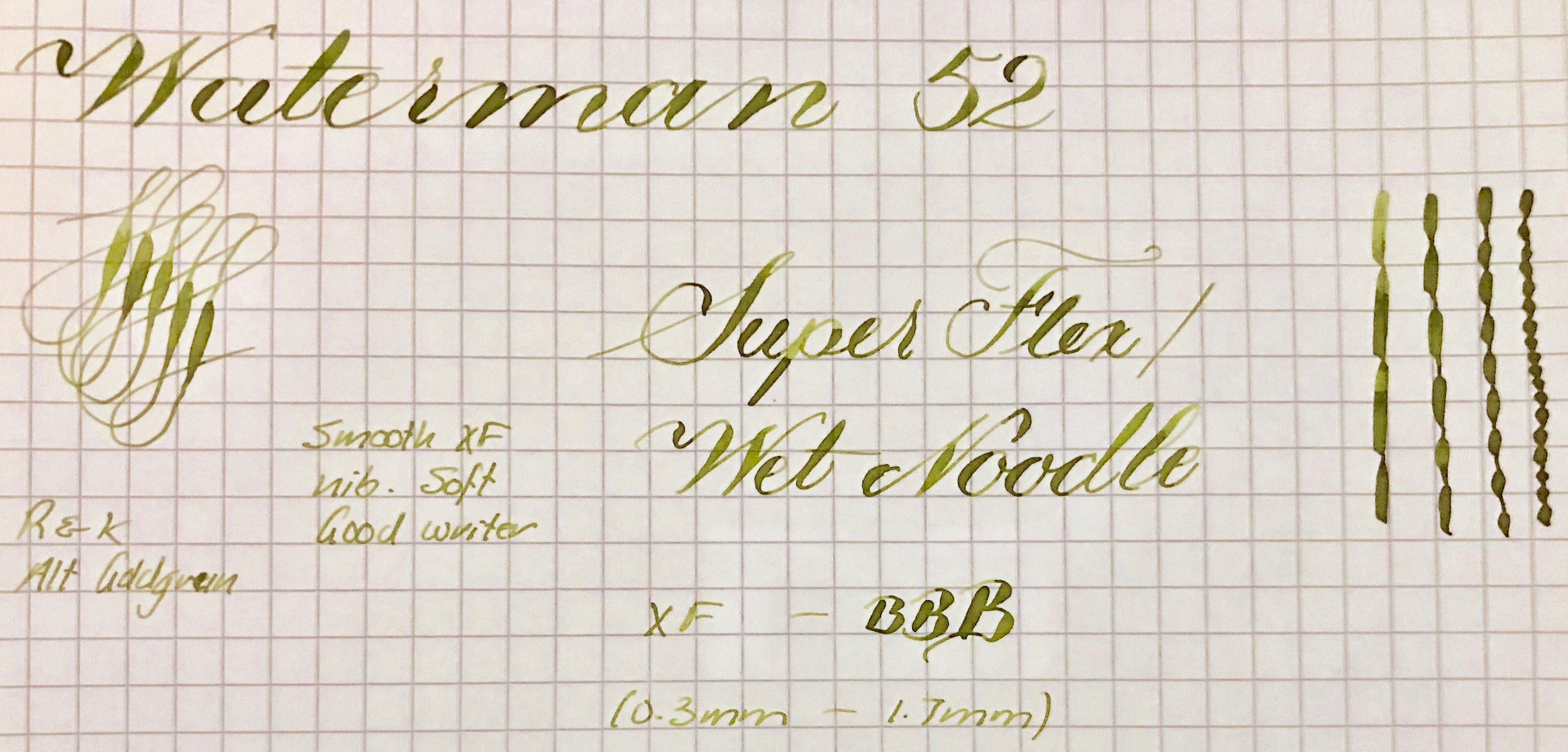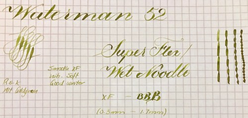NIB: 14kt. Waterman #2, XF to BBB (0.3mm-1.7mm), SUPER FLEX/WET NOODLE (See “Grading Flex Nibs” for How I Grade)