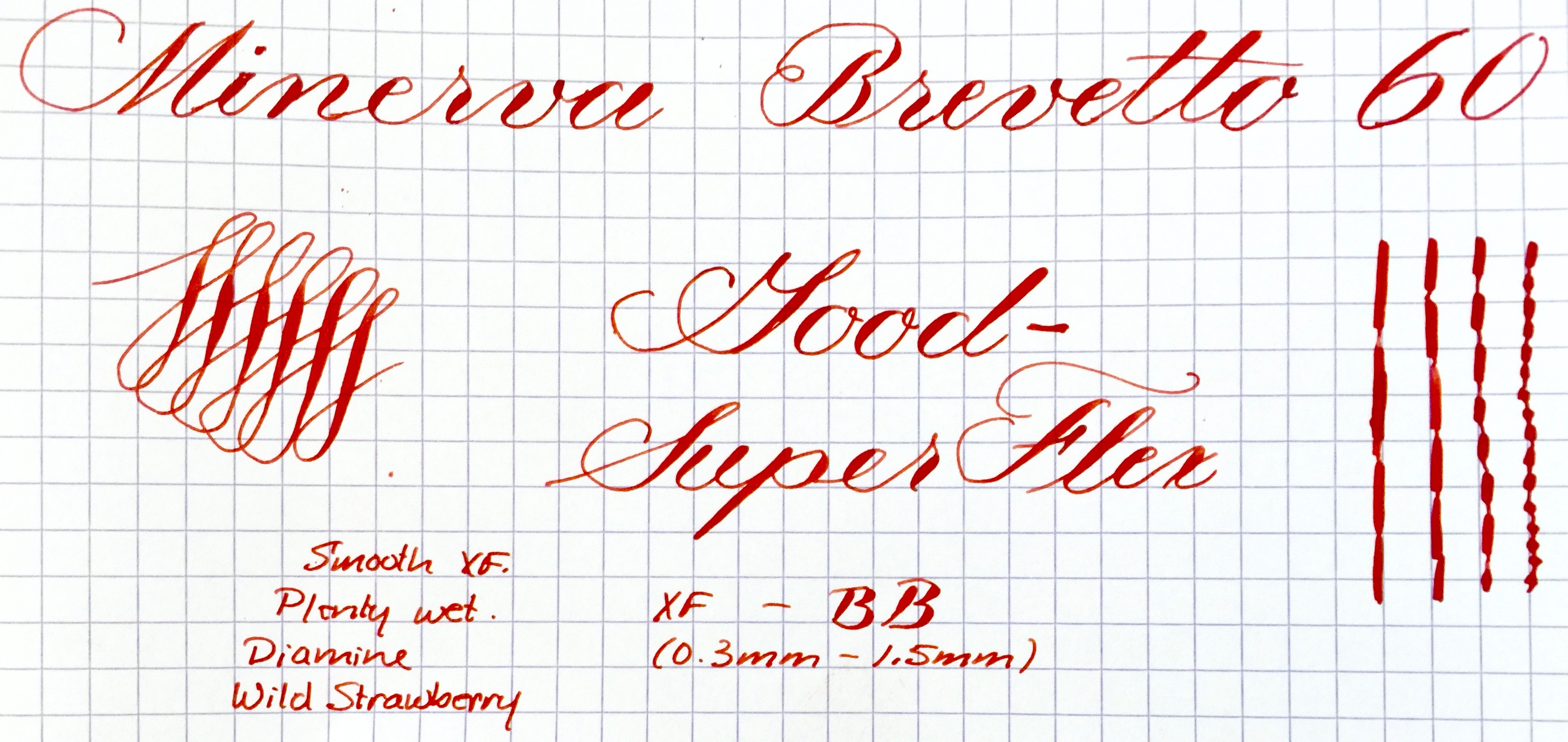 NIB: 14kt. Minerva, XF to BB (0.3mm-1.5mm) GOOD/SUPER FLEX (See “Grading Flex Nibs” for How I Grade)
