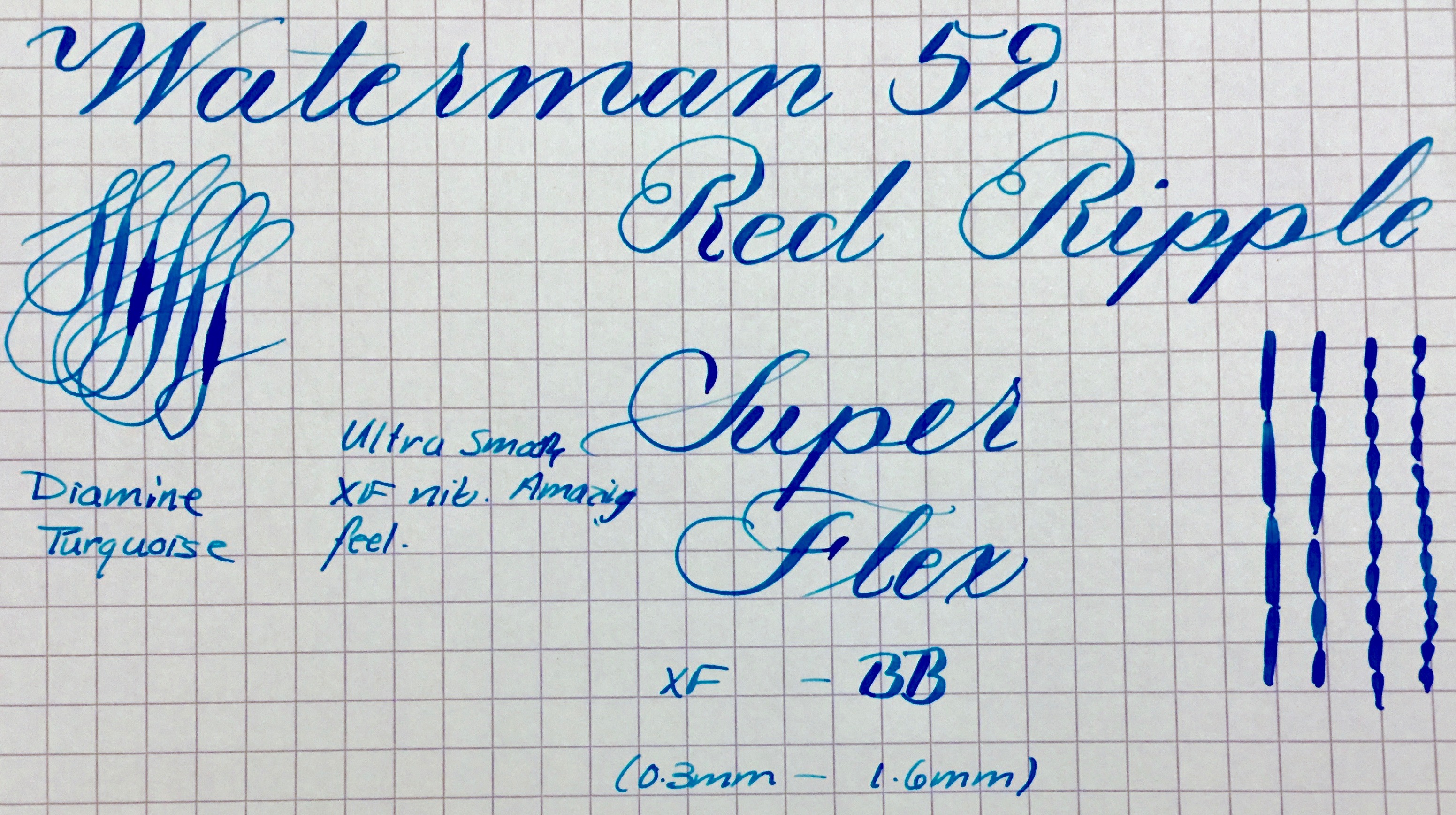 NIB: 14kt. Waterman #2, XF to BB (0.3mm-1.6mm), SUPER FLEX (See “Grading Flex Nibs” for How I Grade)