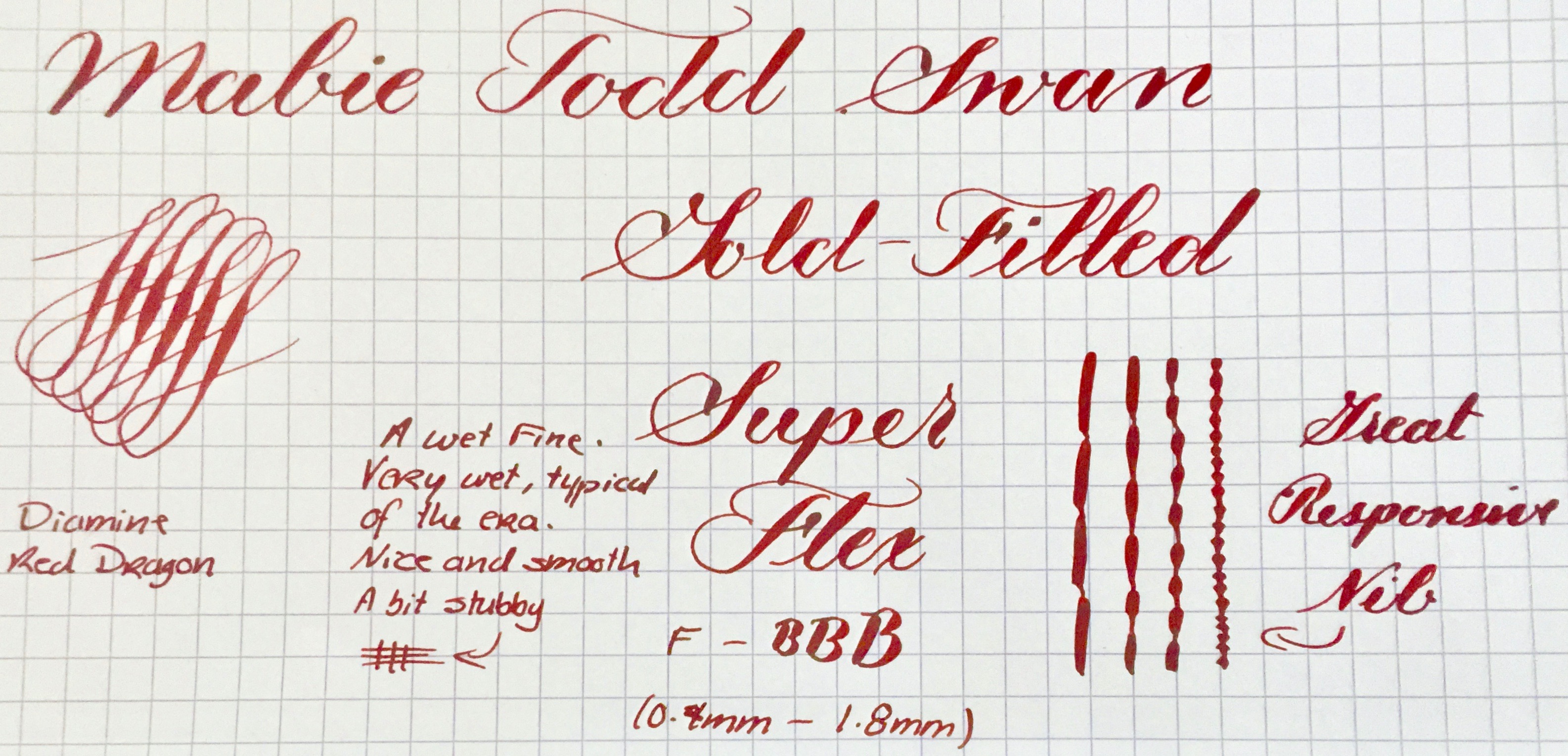 NIB: #2 Mabie Todd Swan, F to BBB+ (0.4mm-1.8mm), SUPER FLEX (See “Grading Flex Nibs” for How I Grade)