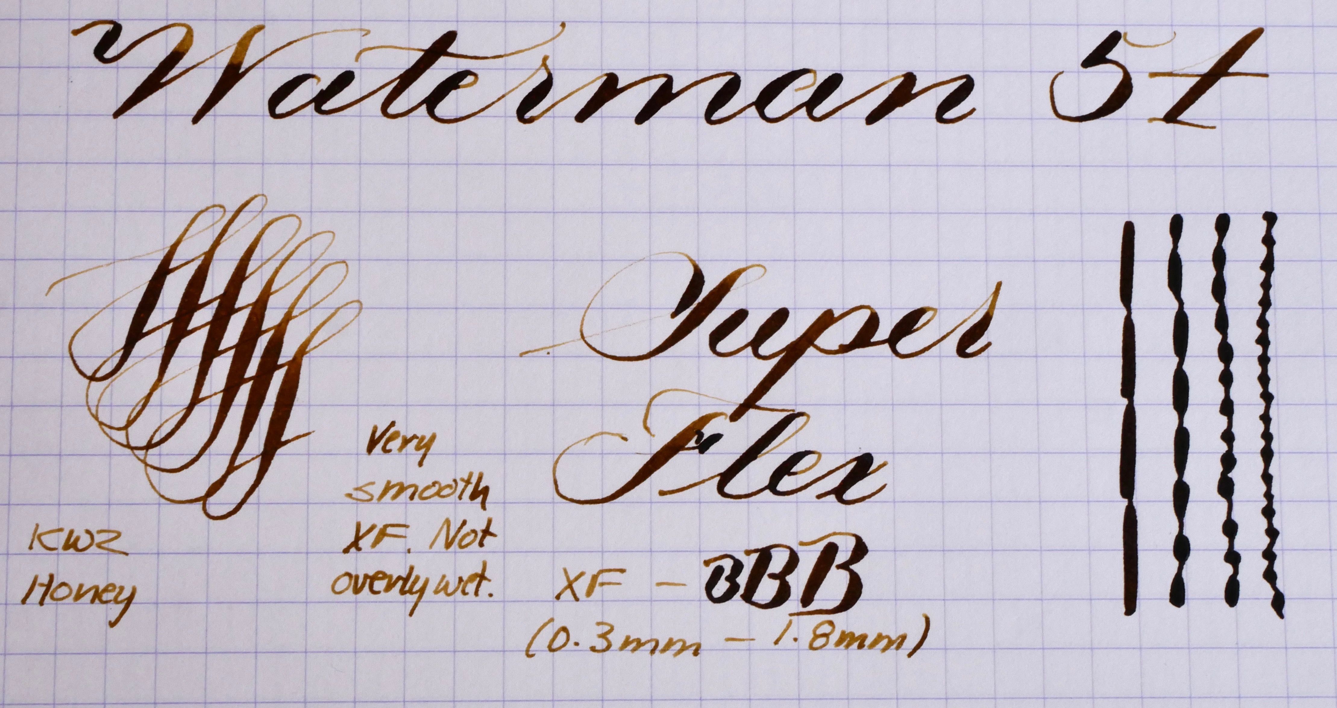 NIB: 14kt. Waterman #4, XF to BBB (0.3mm-1.8mm), SUPER FLEX (See “Grading Flex Nibs” for How I Grade)