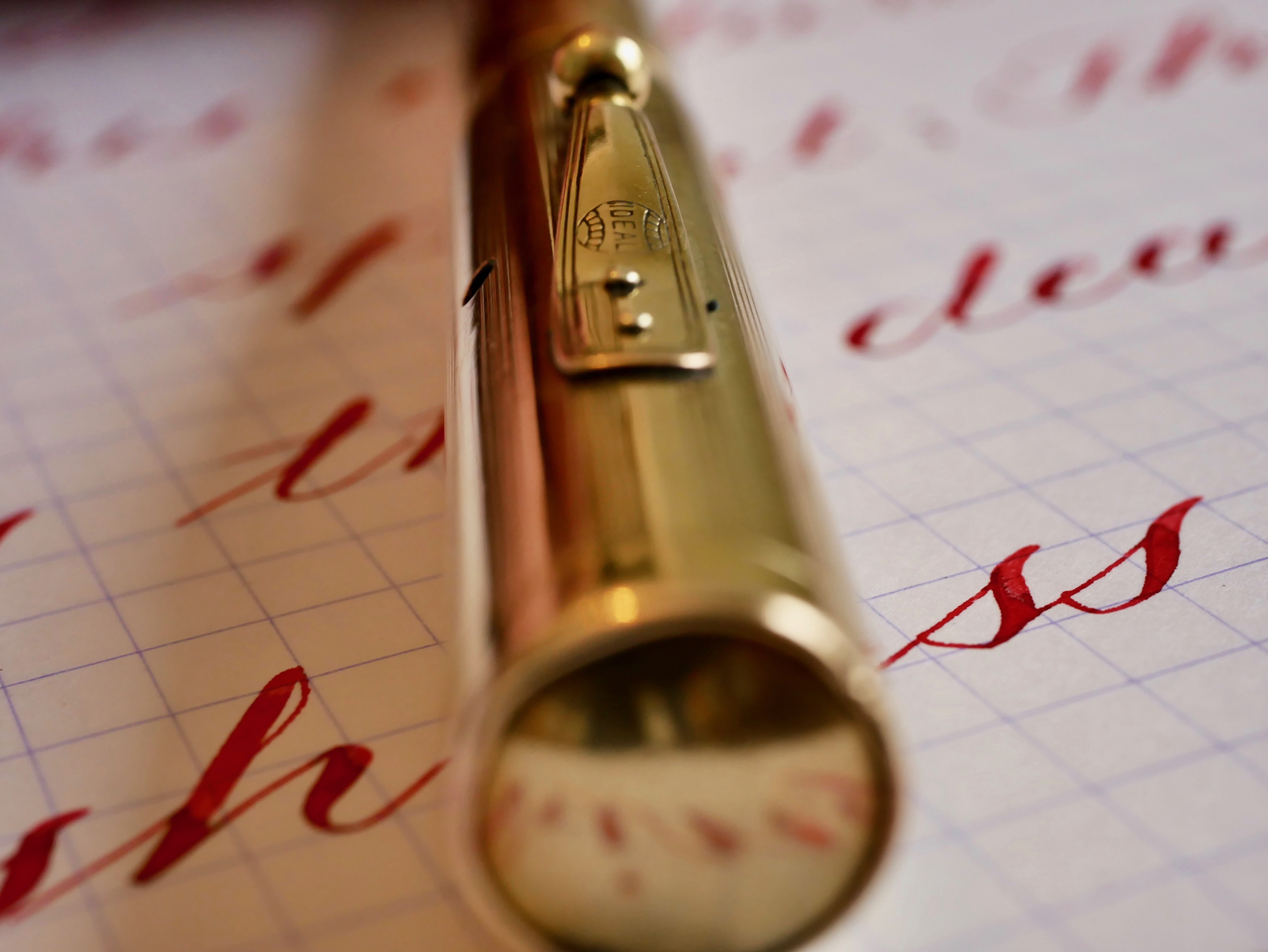 Here is the iconic Waterman 52 in a gold-filled overlay (thus the “05” prefix). This gold-filled overlay does show some use. Nothing major, just little stuff. There are some small dings on the top lip of the cap, which is pretty common, and some very tiny ones here and there. There is also quite a bit of light scratching throughout the pen. To me it looks well cared for but pretty heavily used. There is some brassing on the lower part of the cap and top of the lever. If you are looking for a collector’s item, then I’d say pass. If you are looking for a well-fortified 52 ready for every day use, then it’s perfect. The 14kt. Waterman #2 nib is a wet F (0.4mm) that flexes nicely up to BBB+ (1.8mm). Normal writing is very smooth with some nice character. Flex is plenty wet, comes pretty easy, and is pretty responsive. It’s a great all-around nib ready for just about any writing task.