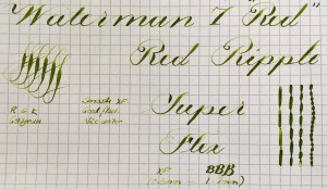 NIB: 14kt. #5 Waterman “RED”, F to BBB (0.35mm-1.6mm), GOOD/SUPER FLEX (See “Grading Flex Nibs” for How I Grade)