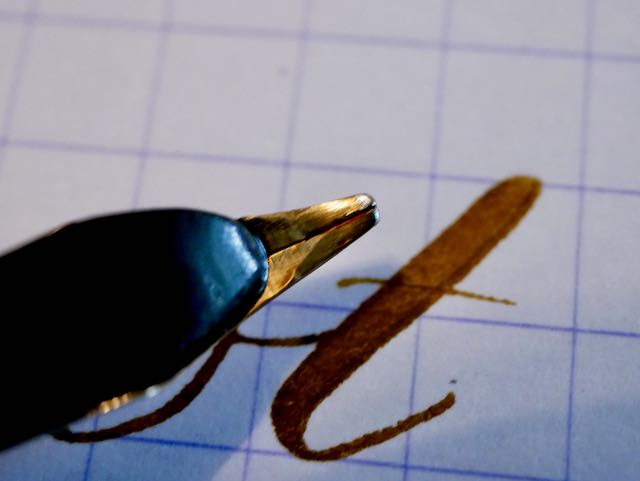 NIB: 14kt. Waterman BROWN, XF to BBB (0.3mm-1.7mm) WET NOODLE (See “Grading Flex Nibs” for How I Grade)